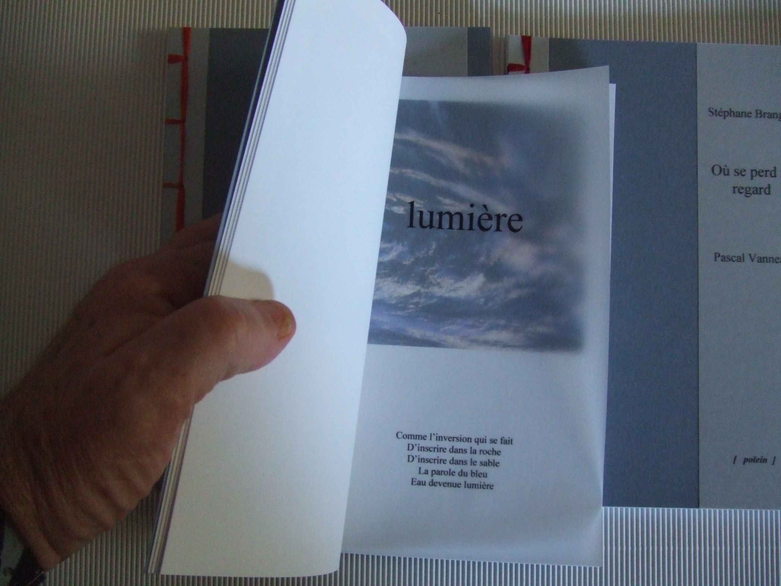 Chaque livret comporte 6 photographies de Pascal Vanneau imprimées sur papier Beaux-arts avec des encres pigmentaires accompagnées des six poèmes de Stéphane Branger imprimés sur calque (impression laser), le tout relié à la chinoise avec un rafia coloré sous une couverture argentée (15 cm x 21 cm). Les volumes peuvent être acquis séparément ou ensemble. L'ensemble constitue un parcours poétique à travers les dix-huit photos de l'ensemble.